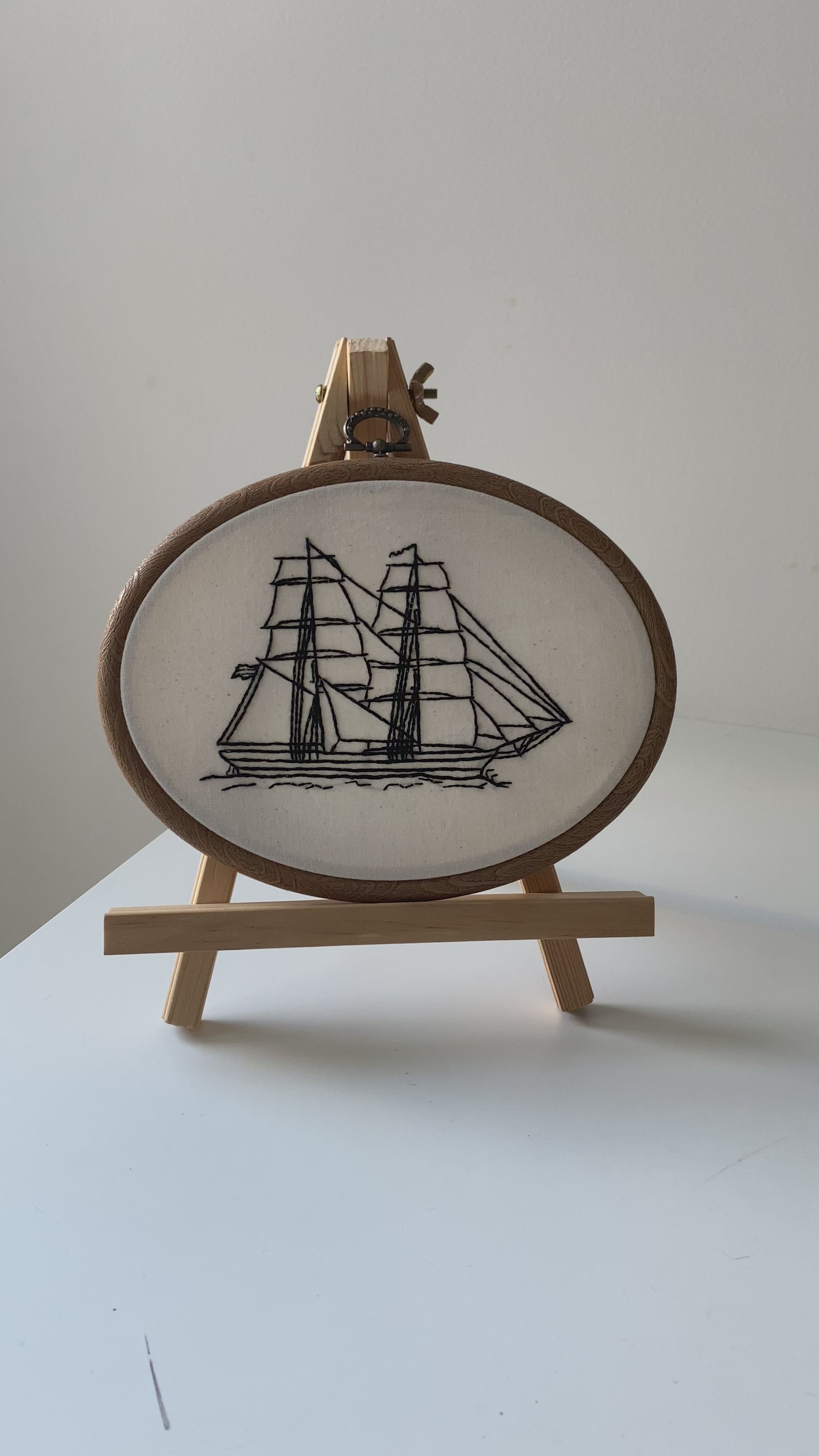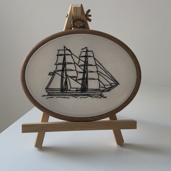 This handmade embroidery captures the quiet excitement of setting sail, inviting you to reflect on the journeys — both imagined and real — that shape your life.