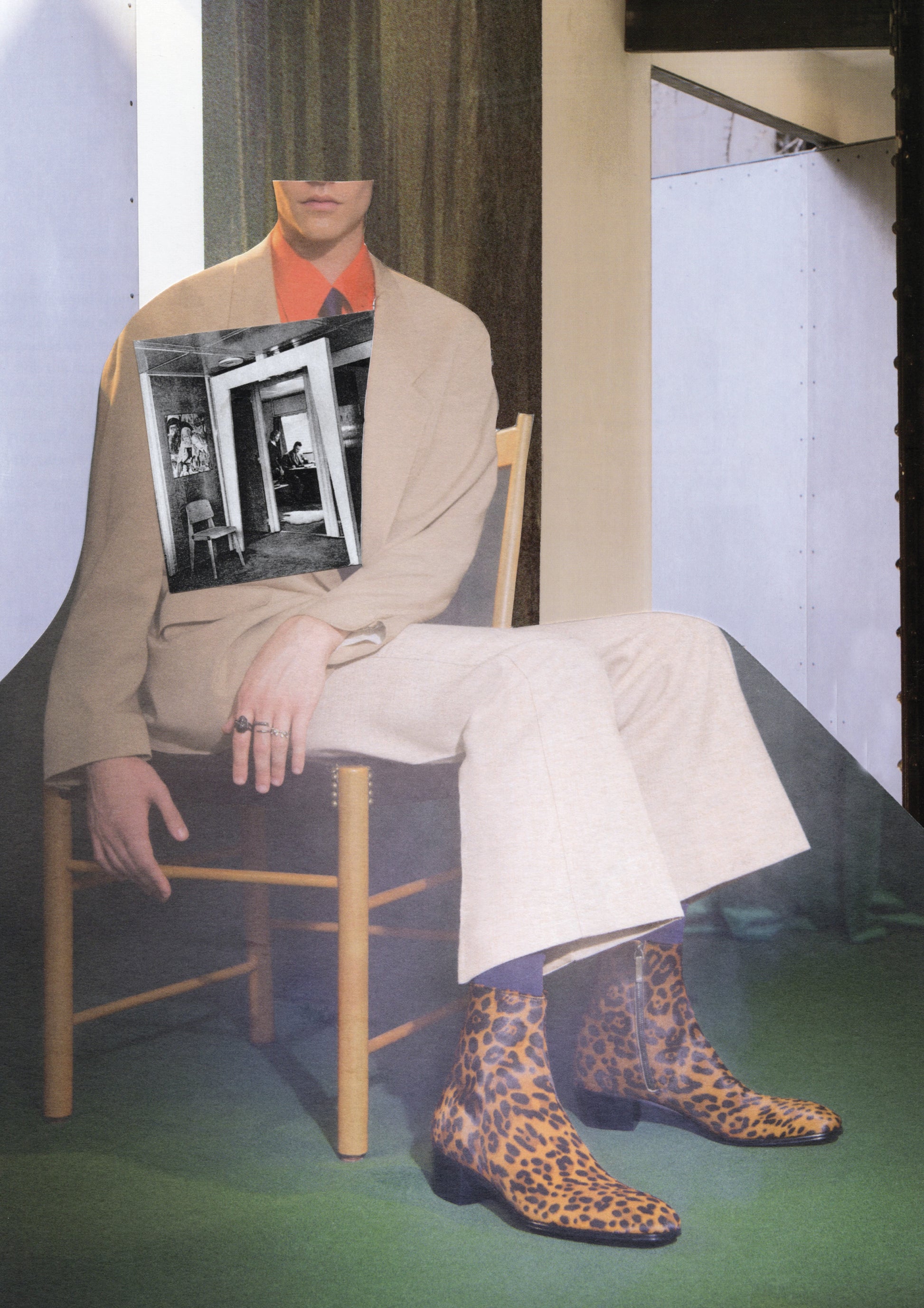 In this collage, a man sits in stillness. From his chest emerges a photograph of a couple, a fragment of love, suspended between what was and what remains.